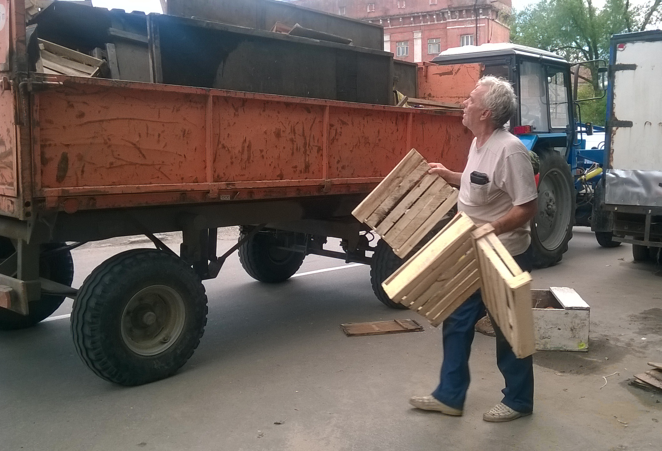 Следующая точка незаконной торговли оказалась совсем недалеко. Но ни продавцов, ни арбузов там не было. Через квартал, на ул. Максима Горького, 33, проверяющих ждали пустые прилавки, которые разрубили топором работники коммунальной службы. После этого их погрузили в прицеп трактора. Теперь их место на свалке.