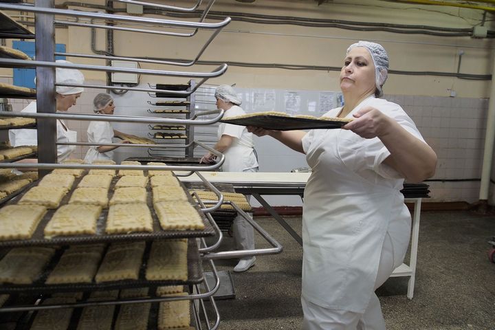 Сладкие сувениры готовили вручную, форму вырезали на доске. Все пряники имеют фруктовую начинку.
