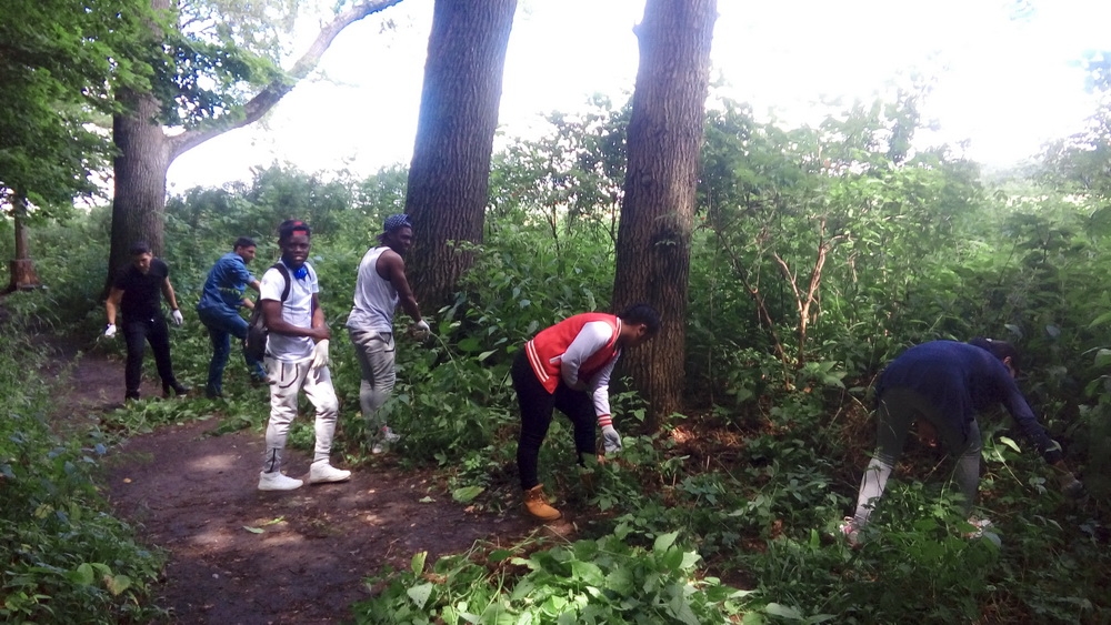 21 июля волонтеры расчищали после санитарной рубки лесные участки Ясной Поляны, убирали остатки деревьев в центральной части усадьбы, очищали дорожку к излюбленной скамейке Льва Толстого, уничтожали сорняки в яснополянском лесу.