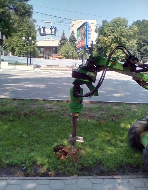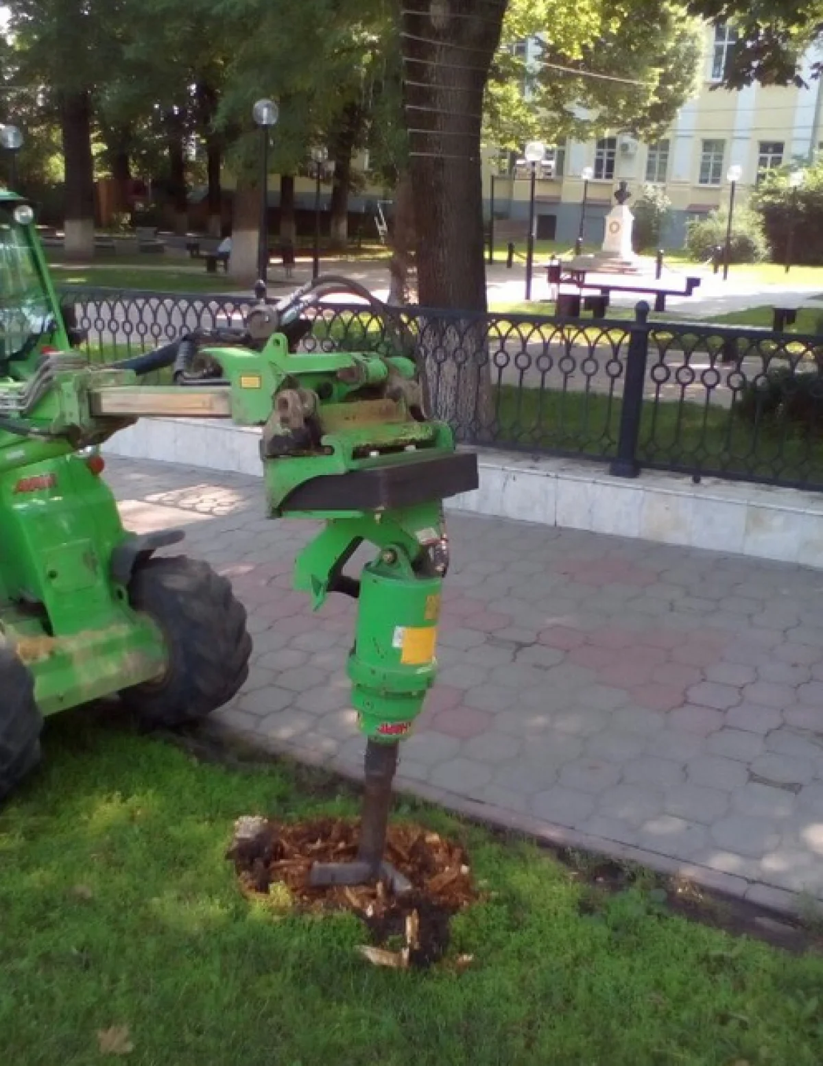 В Туле продолжаются работы по благоустройству. На проспекте Ленина с помощью спецтехники ликвидируют пни.