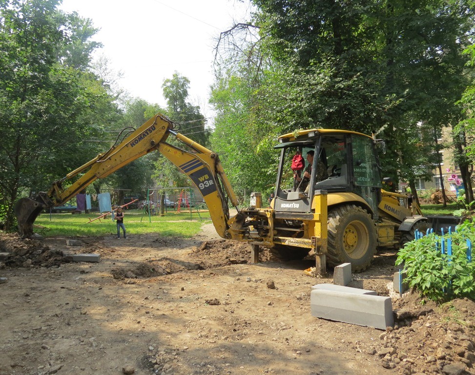 Специалисты организации ООО «ПАРИТЕТ» асфальтируют дворовую территорию, устанавливают бордюрный камень по ул. 9 Мая, 5, 7/ ул. Смидович, 14. Также в этом дворе обустроят парковочные карманы, пешеходные дорожки, установят малые архитектурные формы, оградят газоны.