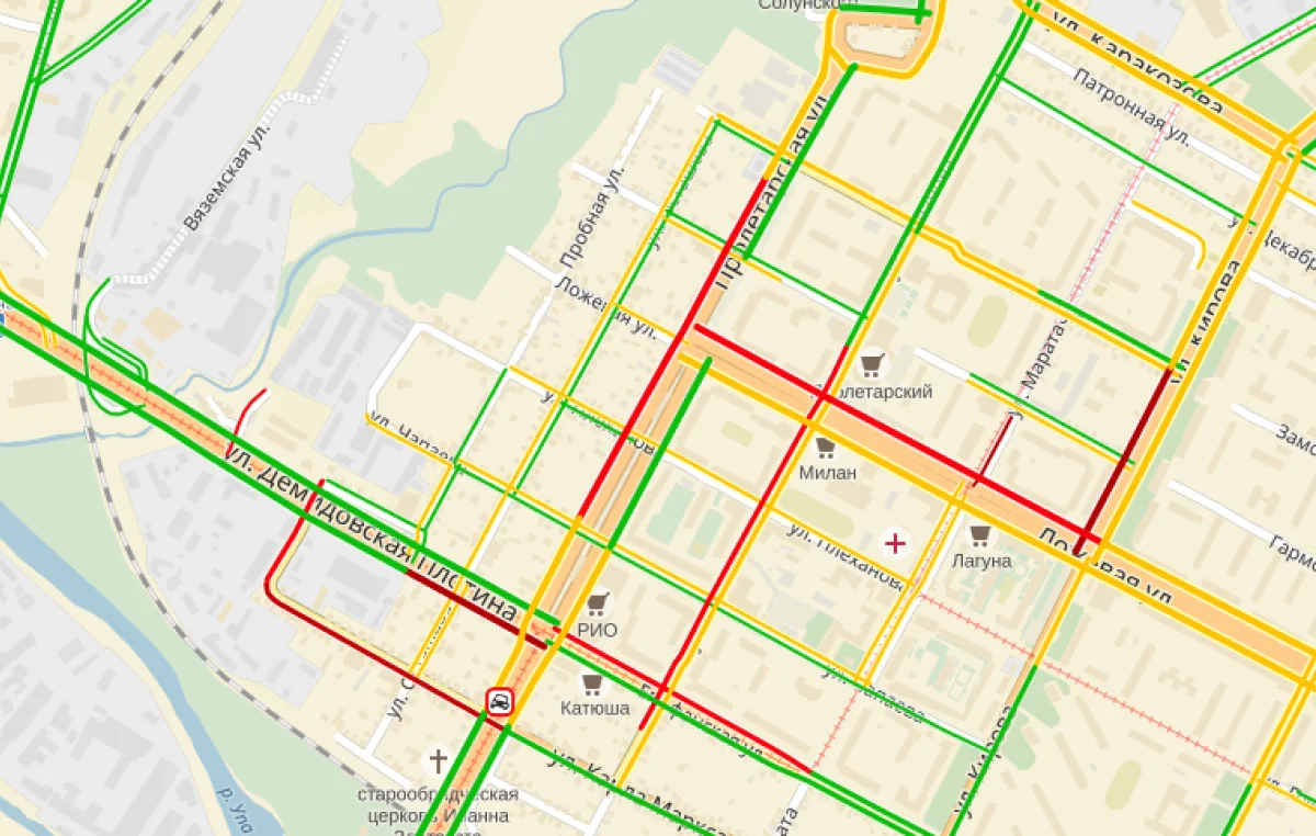 Около 9 утра на пересечении улиц Пролетарской и К. Маркса произошло ДТП. Из-за аварии на мосту через Упу образовалась длинная пробка в обе стороны. Выбирайте пути объезда!