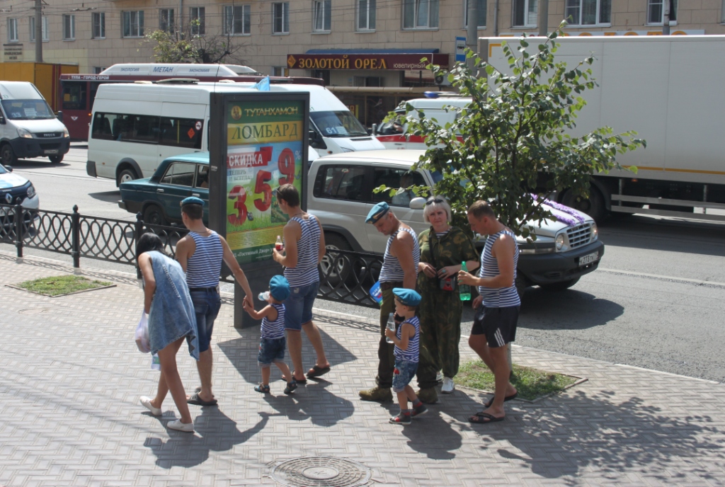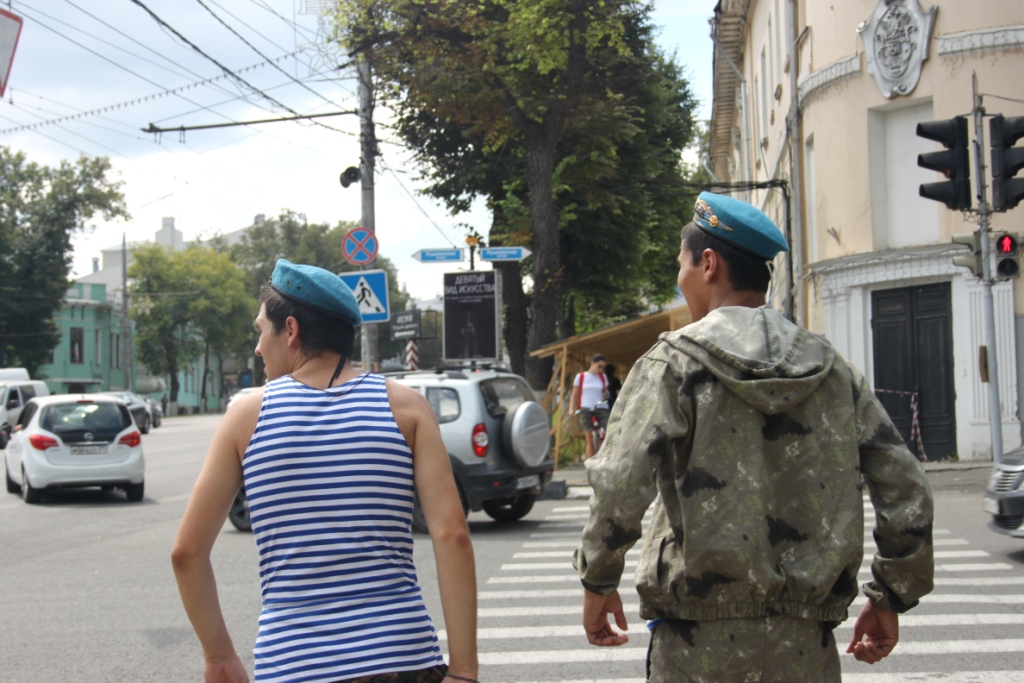 Сегодня, 2 августа, по всей стране празднуется 86-ая годовщина со дня образования Воздушно-десантных войск. На улицах Тулы с самого утра начали появляться люди в тельняшках, военной форме или просто в полосатой одежде. Пока город кипит работой, кто-то отдыхает.