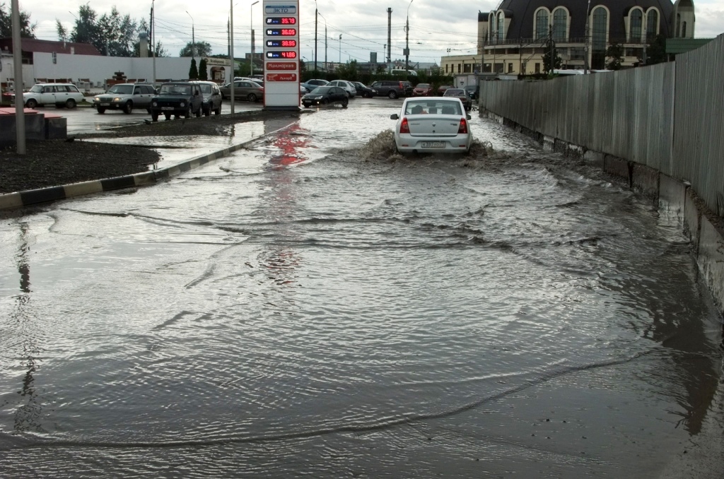 А вот так "корабли", вернее, машины, «плавают» на ул. Кауля. Тут хотя и нет глубины, как в предыдущем озере, зато есть широта. В общем-то, можно присвоить этому водоему звание «моря». Маленького, но гордого.