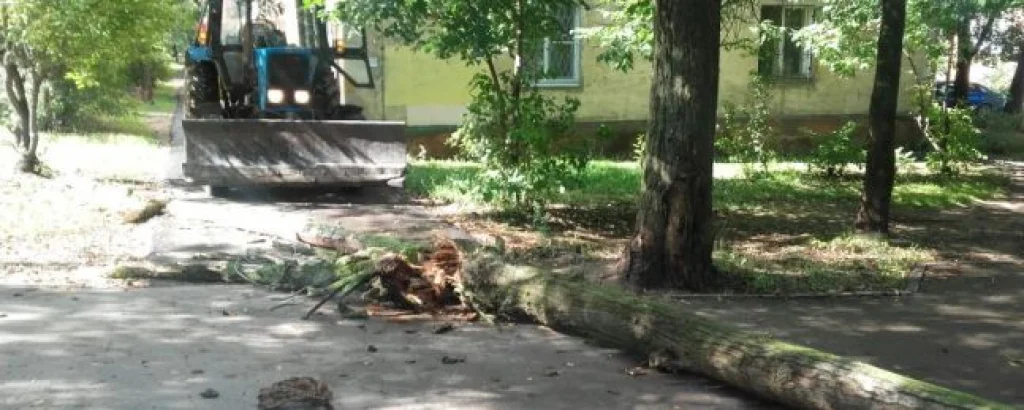 Для ликвидации последствий ночной стихии утром приехал трактор, но не тут то было. Коварное дерево моментально вывело технику из строя и продолжило лежать посреди дороги. Тем не менее тракторист смог починить машину и убрать дерево с тротуара.