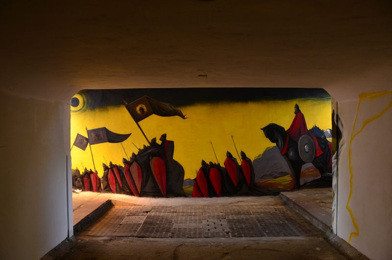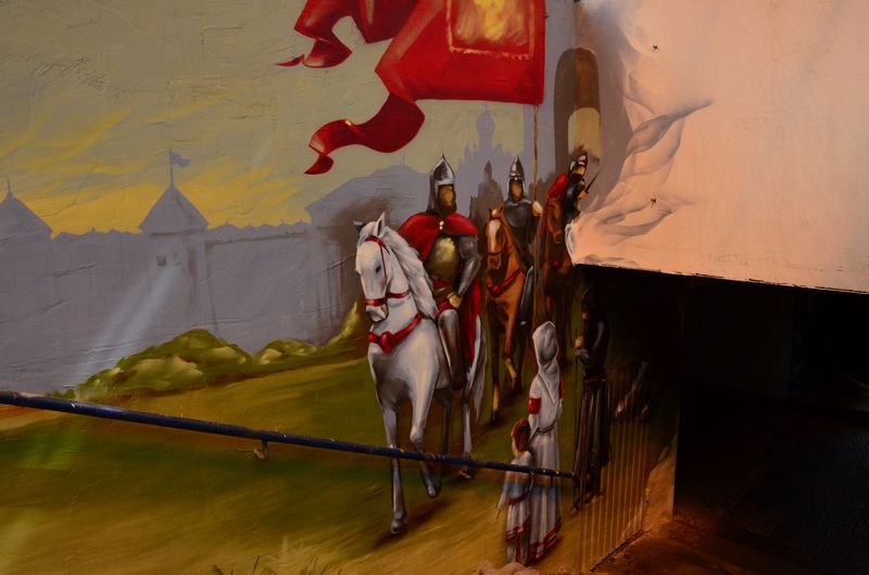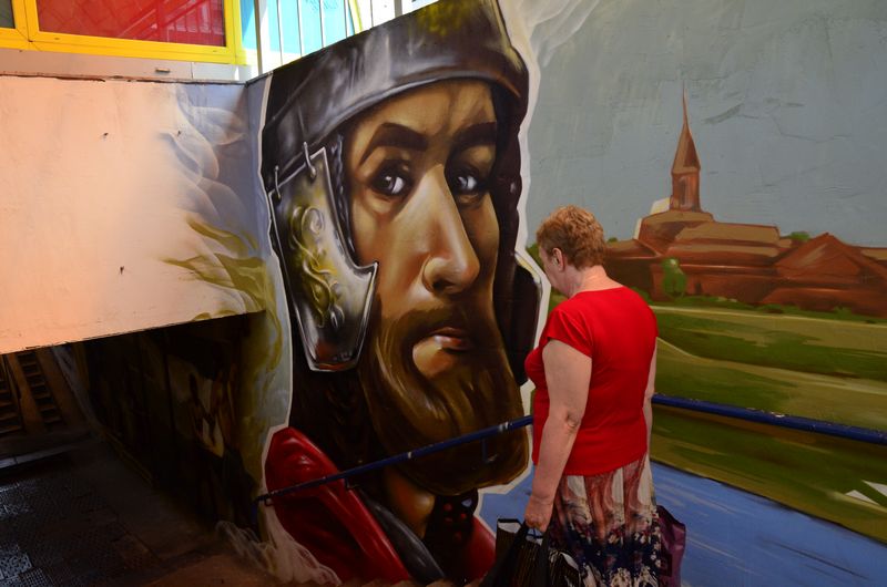 В переходе на Каминского во всю кипит работа. Уличные художники продолжают роспись стен. Вскоре новое граффити, посвященное Куликовской битве, будет радовать туляков ежедневно.