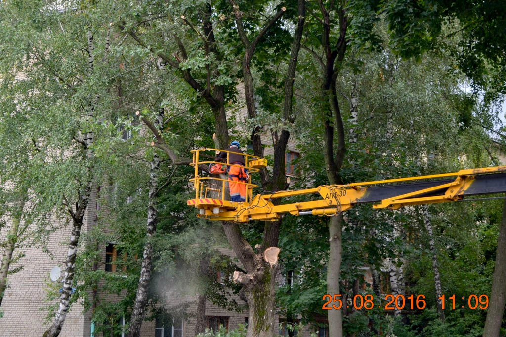 В четверг, 25 августа, в Пролетарском районе Тулы косили траву на газонах и обрезали аварийные деревья.