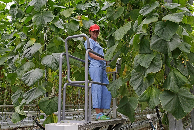 Тепличный комбинат успешно работает уже 3 года. Высокотехнологичное овощеводческое хозяйство выращивает огурцы, томаты, салат, рукколу, укроп, петрушку, кинзу, щавель и другие овощи на территории почти 10 гектаров. Особая гордость – огурцы. В Новомосковске их выращивают больше всех в области. Только в прошлом году поставили около 4000 тонн продукции в магазины Тулы, Москвы, Рязани, Воронежа, Кирова, Липецка, Нижнего Новгорода. Причем практически все овощи выращены из семян и с помощью удобрений российских производителей. Продукция полностью соответствует всем европейским требованиям, по которым поставляют в Россию огурцы и помидоры зарубежные производители.