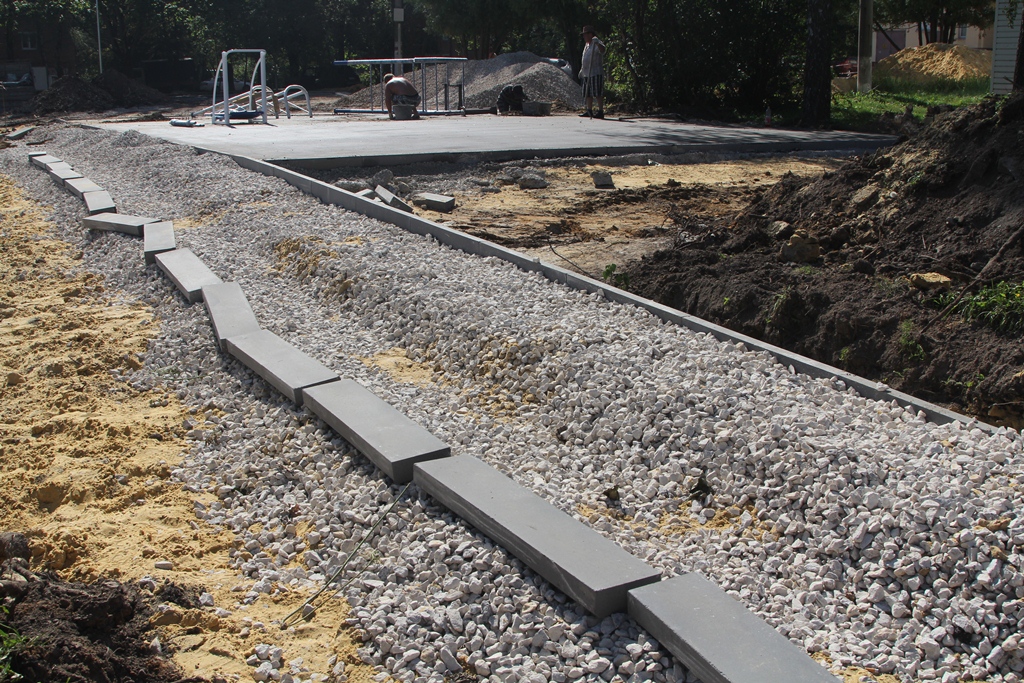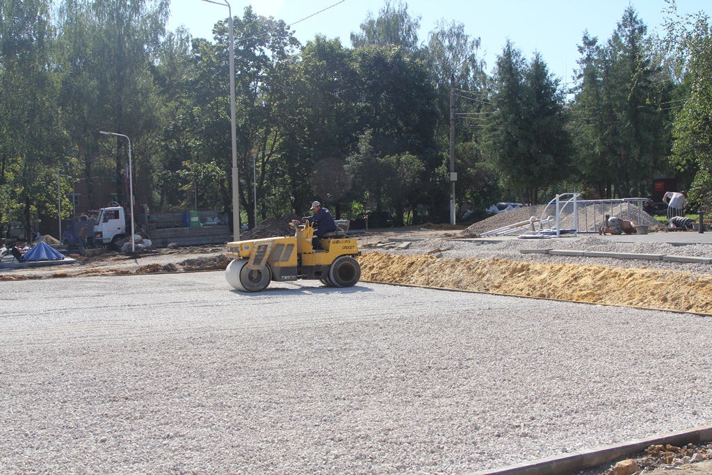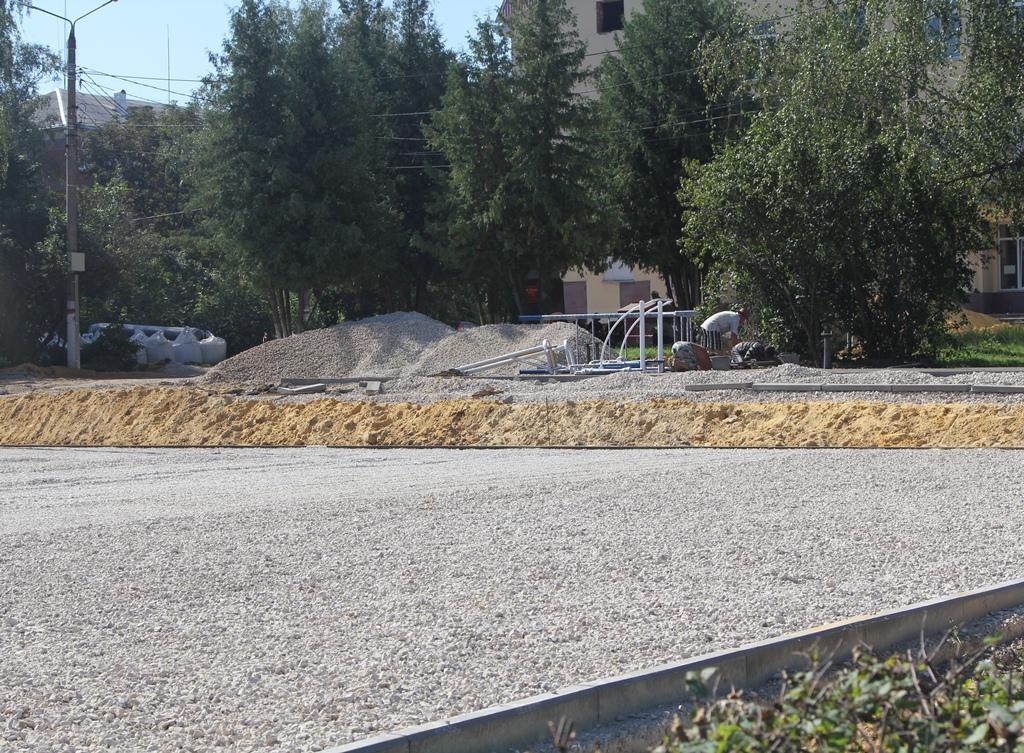На ул. Кутузова 13 в сквере работники подрядной организации укладывают щебень для основания детской площадки. После этого ее заасфальтируют. Появятся там и парковочные карманы. Выполняются работы по благоустройству рабочими подрядной организации ООО «Скип».