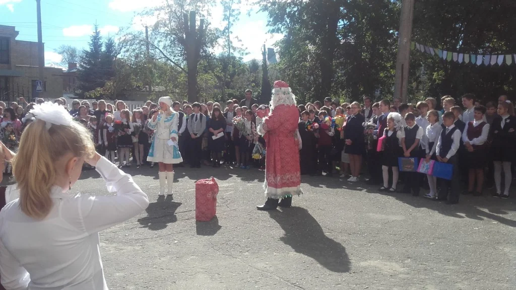 В новомосковскую школу на 1 сентября пришли судебные приставы с Дедом Морозом и Снегурочкой. Странные фотографии ученики тут же выложили в соцсетях.