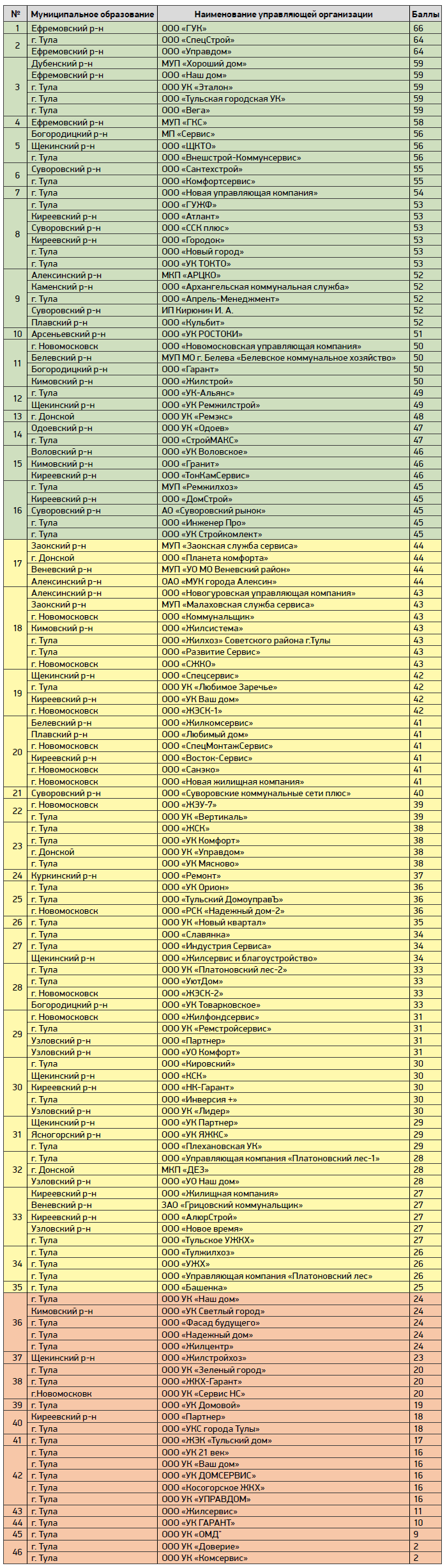 В новый рейтинг вошла 131 УК, из них в лучшем, зеленом секторе — 44 УК, среднячки — 64 УК, в группе «плохишей» числится 23 УК.
