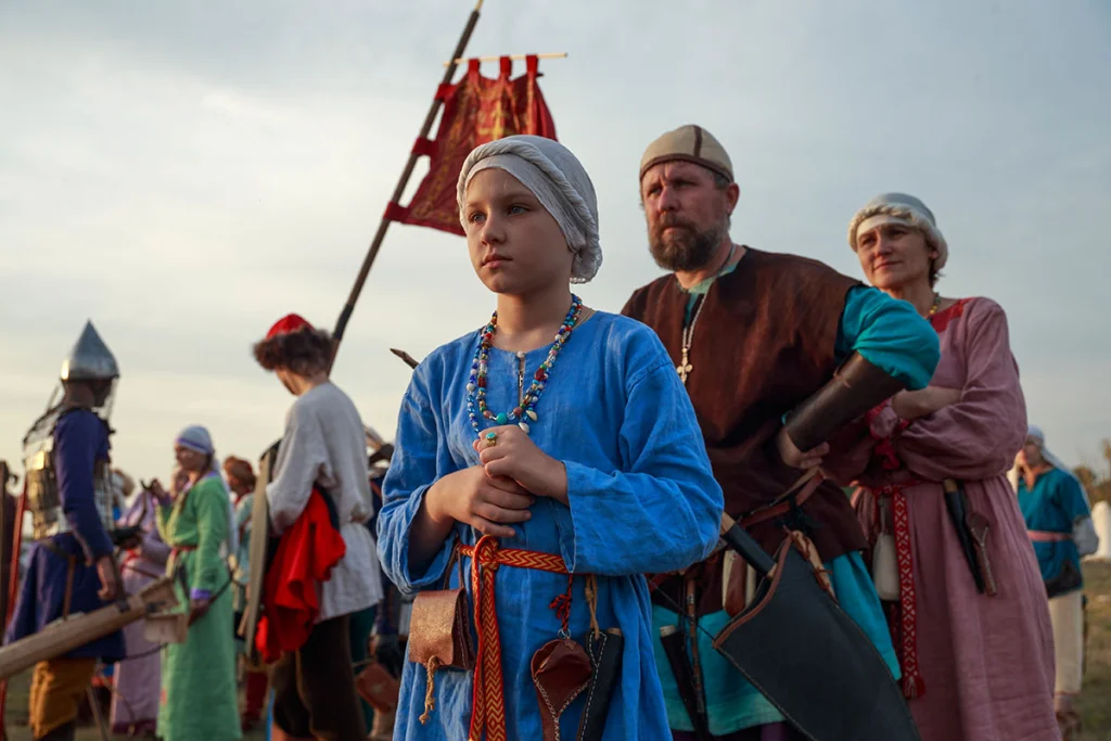 У женской половины – свои интересы. На мастер-классах можно научиться историческим танцам и ремеслам. К примеру, в этом году – познакомиться с рельефной техникой росписи золотоордынской посуды, освоить валяние, научиться вязать носки иглой и плести шнурки. Тема бесед на вечерках – женские головные уборы и прически на Руси.