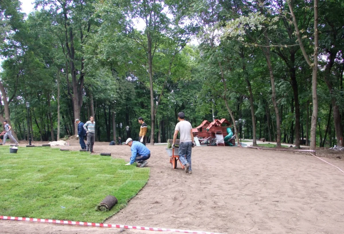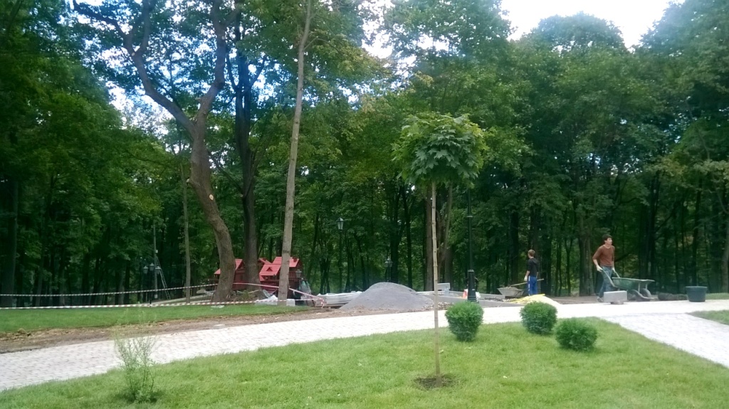 В Туле, в Платоновском парке полным ходом идет благоустройство. Кругом стоит шум от бензогенераторов, дисковых пил, молотков.
