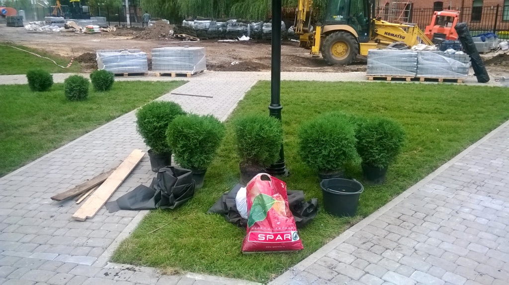 Помимо этого, на благоустраиваемой территории напротив бывшего ресторана «Купец Платонов» сажают миниатюрные пихты.