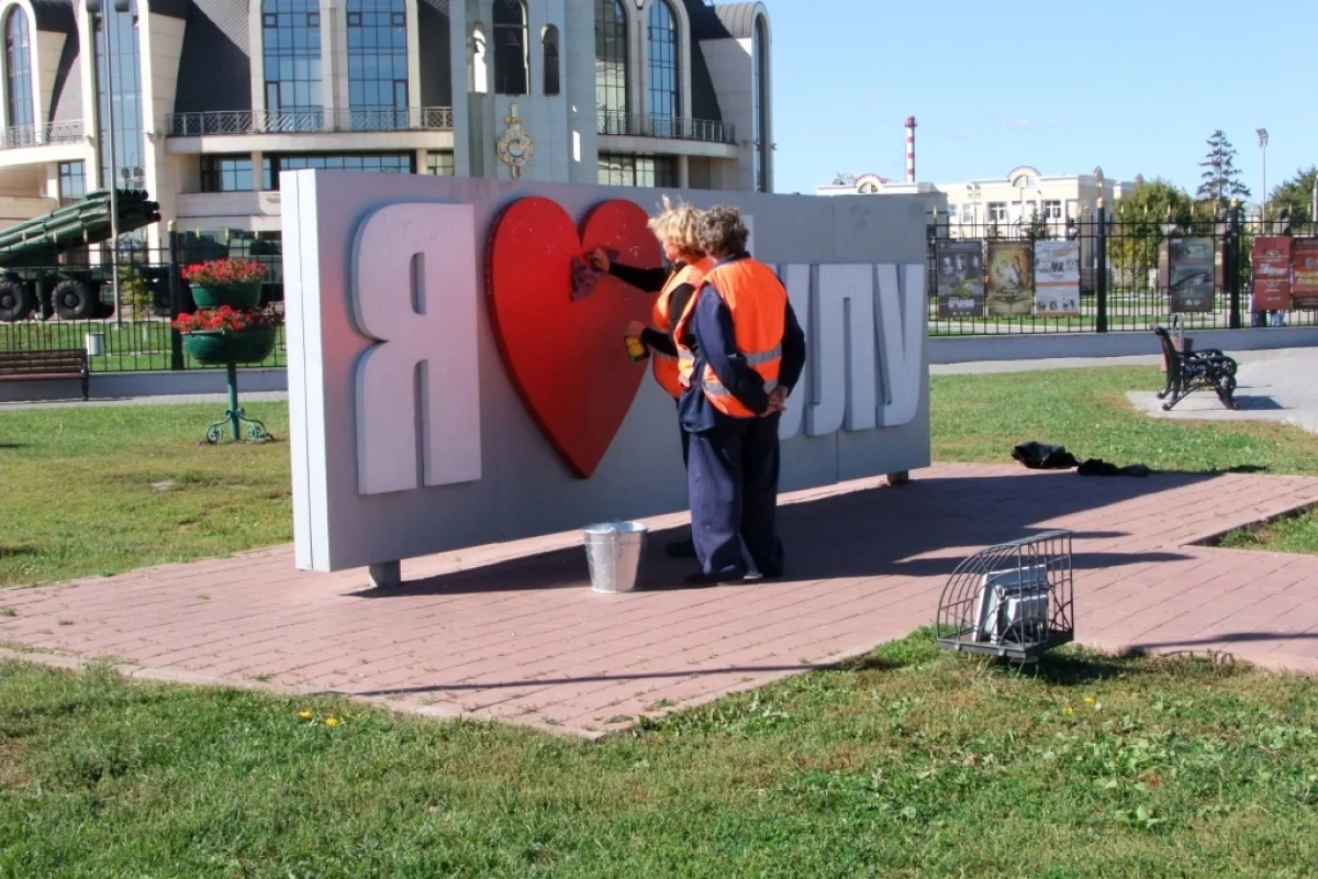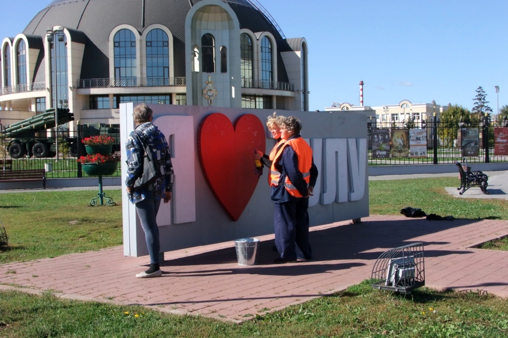 В Туле, около Музея оружия в Заречье сегодня работницы коммунальной службы отмывали сердце на стеле «Я люблю Тулу». Мы не могли пройти мимо, и сфотографировали этот трогательный момент.