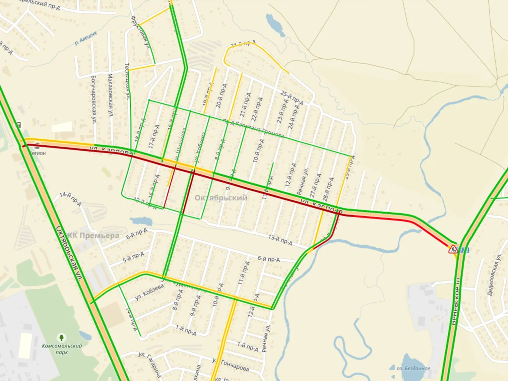 Очевидцы в соцсетях сообщили, что пробка тянется через весь поселок Октябрьский. Движение по ул. Карпова парализовано из-за дорожных работ. Автомобилисты потеряли несколько часов времени, чтобы добраться до работы.