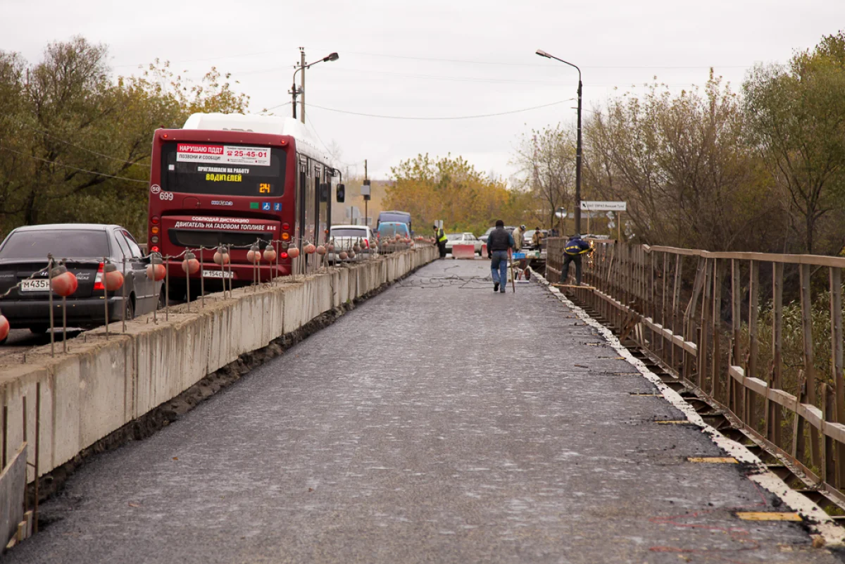 На этой неделе специалисты приступят к установке барьерного ограждения, которая отделит проезжую часть от пешеходной зоны моста. По завершении работ на первой половине моста, рабочие приступят к проведению ремонтных работ на второй половине.
