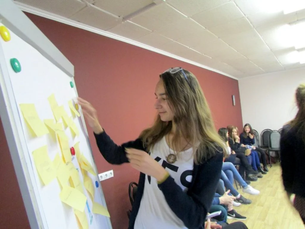А третий день школы был полностью посвящен социальному проектированию, где каждый участник смог попробовать свои силы в создании настоящего социального проекта. О тонкостях такого проектирования участникам познакомила начальник отдела по работе с общественными и волонтерскими организациями ММЦ «Родина» Екатерина Басова.
