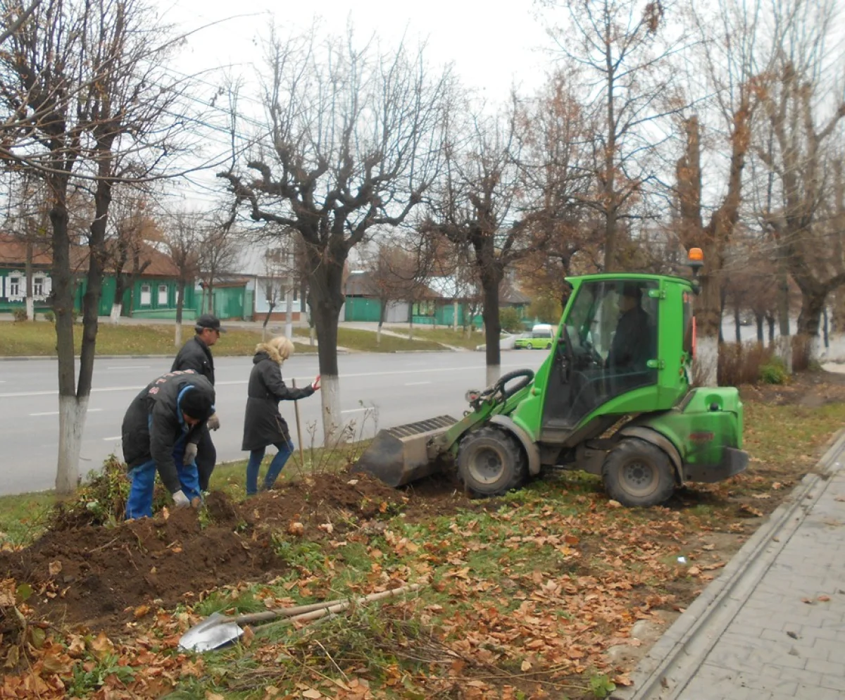 На участке от ул. Токарева до Московского путепровода активно проводится посадка саженцев.