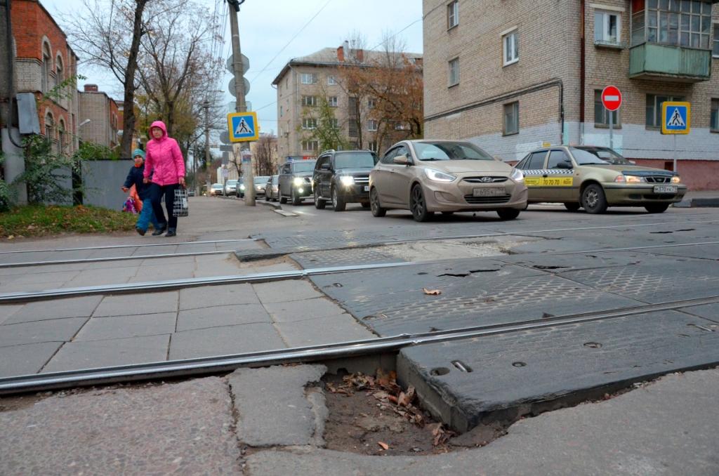 Первым номером пойдут ямы на ул. Горького и Демидовской (включая их пересечение). Тут у нас проблема с люком и трамвайными путями. Далеко, кстати, не первые и не последние по Туле. Однако новичкам, которые об этих ямах не подозревают, приходится действительно туго.
