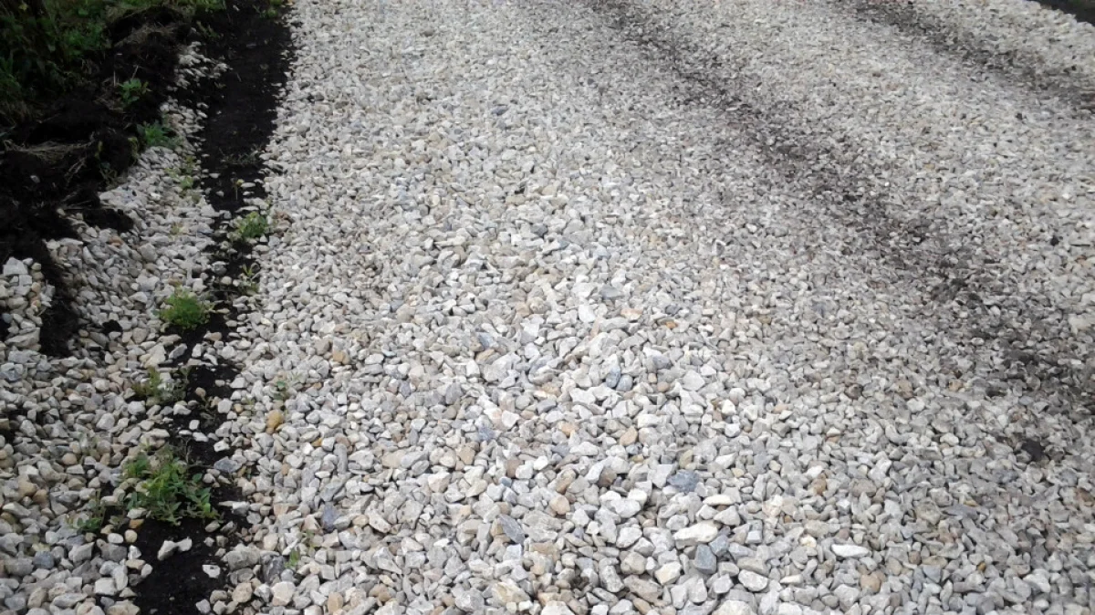 На трех километрах дорожного полотна насыпали щебень.