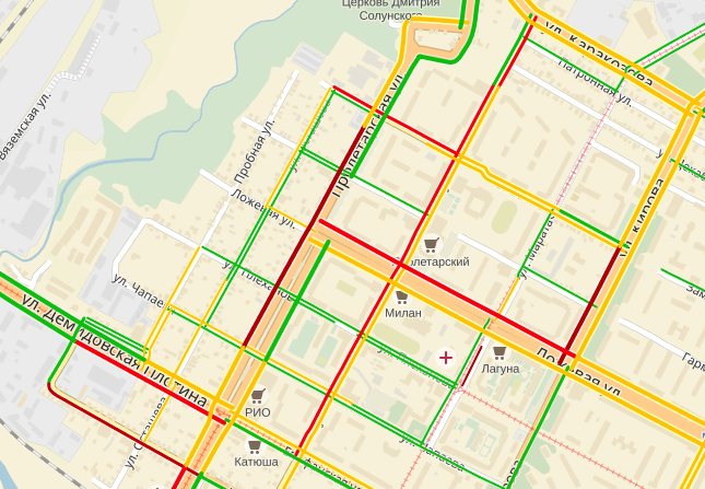 Также из-за ДТП парализовано движение по ул. Рязанской, от проспекта Ленина до Новомосковского шоссе стоит нечётная сторона. Выбирайте пути объезда!