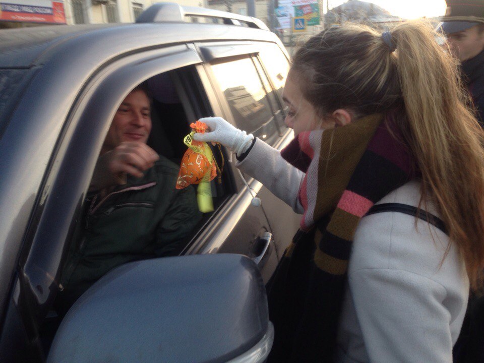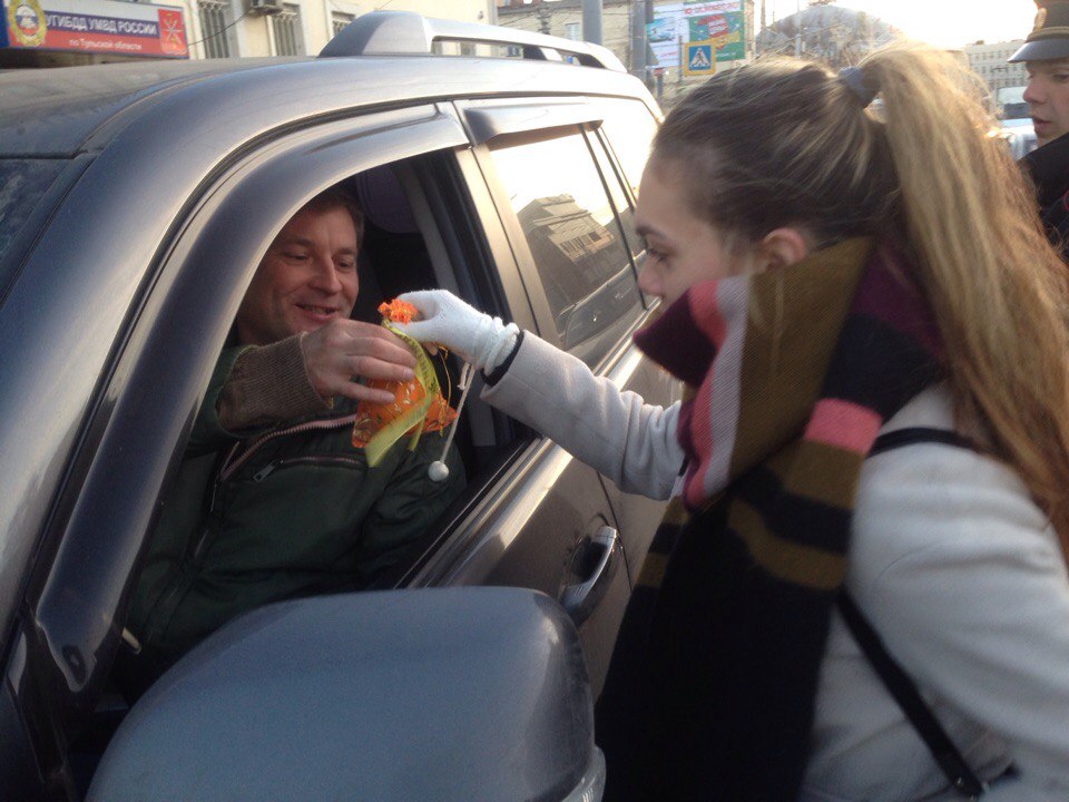 Чтобы поднять настроение тульским водителям в промозглую серую осень, корреспонденты «Центр 71» устроили праздничную акцию совместно с ГИБДД: автолюбителей угощали апельсинами, дарили открытки, памятки с правилами ПДД и свежий номер газеты.