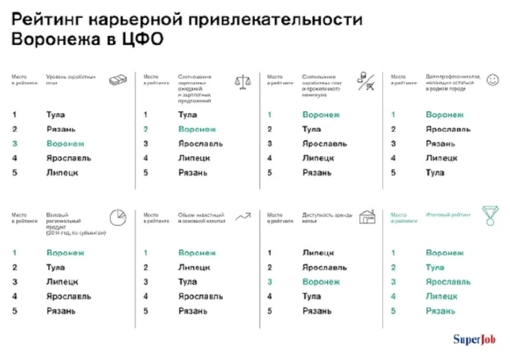Популярный портал Superjob опубликовал рейтинг 5 самых крупных городов ЦФО с точки зрения их карьерной привлекательности.