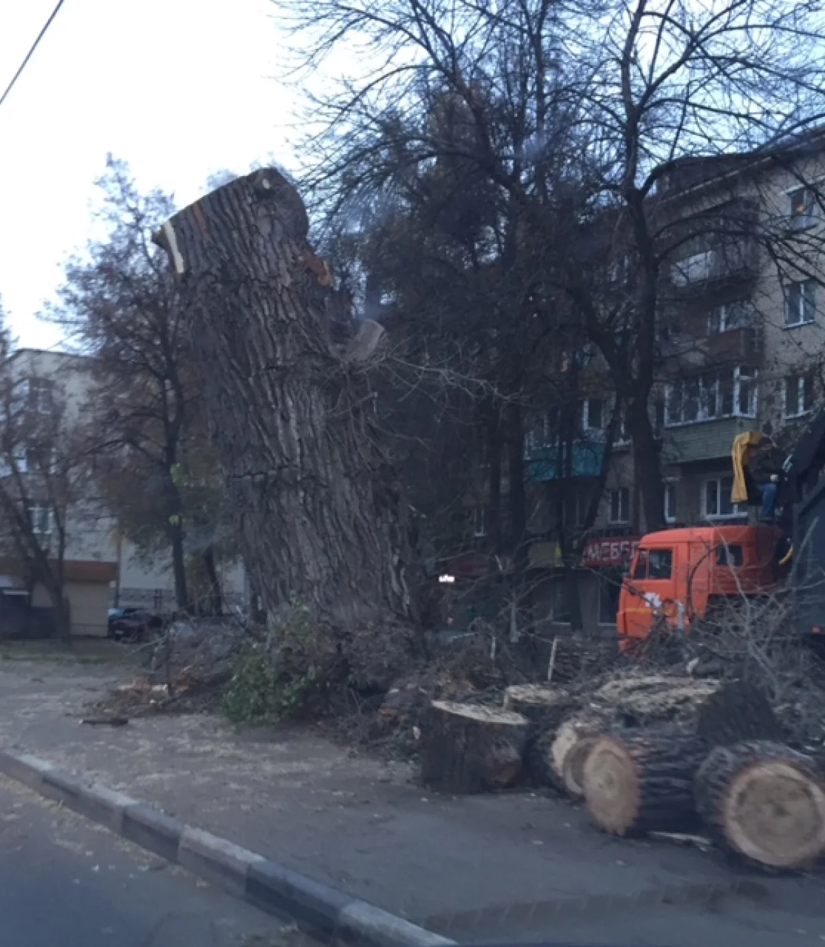 В Туле на ул Оборонной спилили огромный старый тополь, который наверняка застал наших прабабушек.