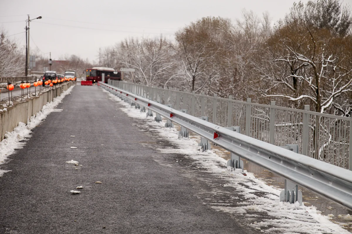 Первая половина моста отремонтирована, и по ней уже ходит транспорт в реверсивном режиме. Специалисты подрядной организации ООО «СтройМонолитСнаб» приступили ко второму этапу.