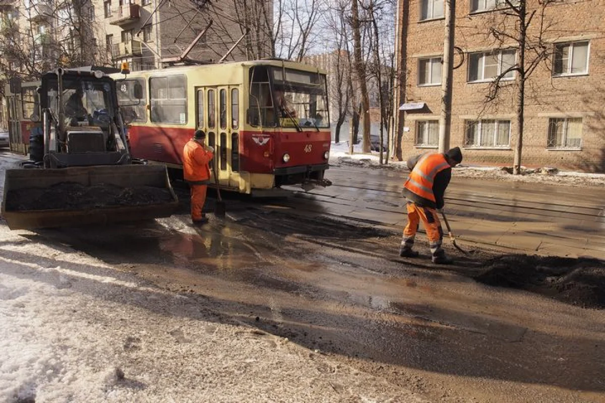 Несмотря на неблагоприятные погодные условия в Туле продолжается ремонт дорог. Работы выполняют специалисты подрядной организации ООО «ТрансДорСтрой».