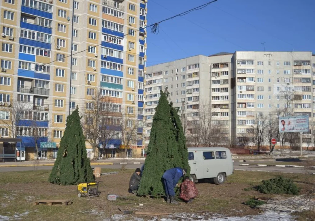 В Пролетарском районе Тулы устанавливают новогодние елочки