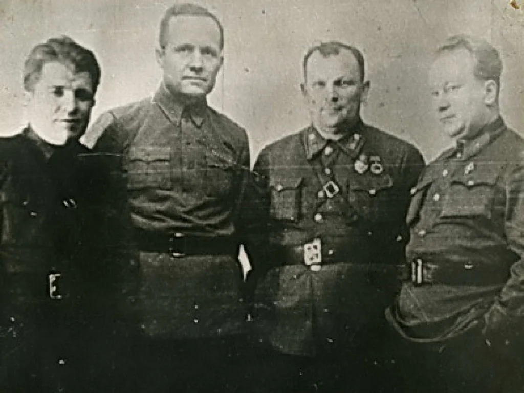 На фото: Члены Тульского городского комитета обороны: Н. И. Чмутов, В. Г. Жаворонков (председатель), А. К. Мельников, В. Н. Суходольский