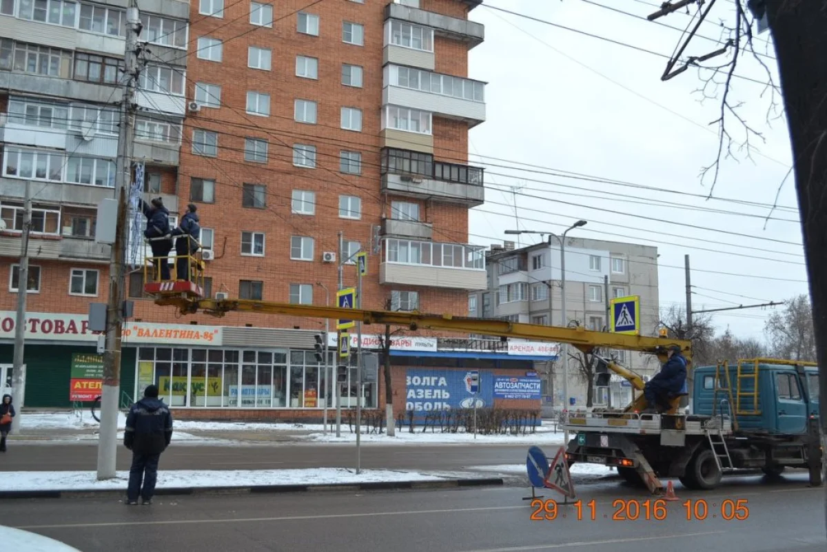 В Пролетарском районе города-героя Тулы ведутся работы по украшению улиц новогодними украшениями. В частности, 30 ноября работы проводятся на улице Ложевой.