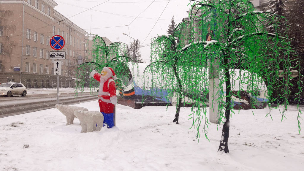 29 ноября сотрудники коммунальных служб монтировали новогодние украшения и ремонтировали ограждения хоккейной коробки.