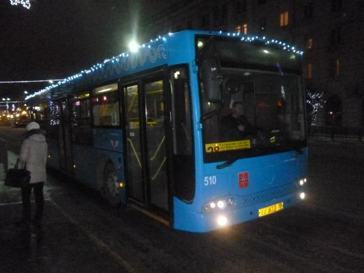 Новый год, что называется «на носу». Город начинает светиться праздничными огнями. Не отстает и общественный автотранспорт.