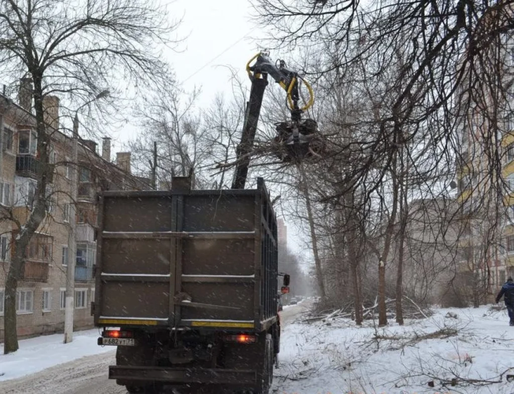 На ул. Дементьева в Туле удаляют аварийные деревья