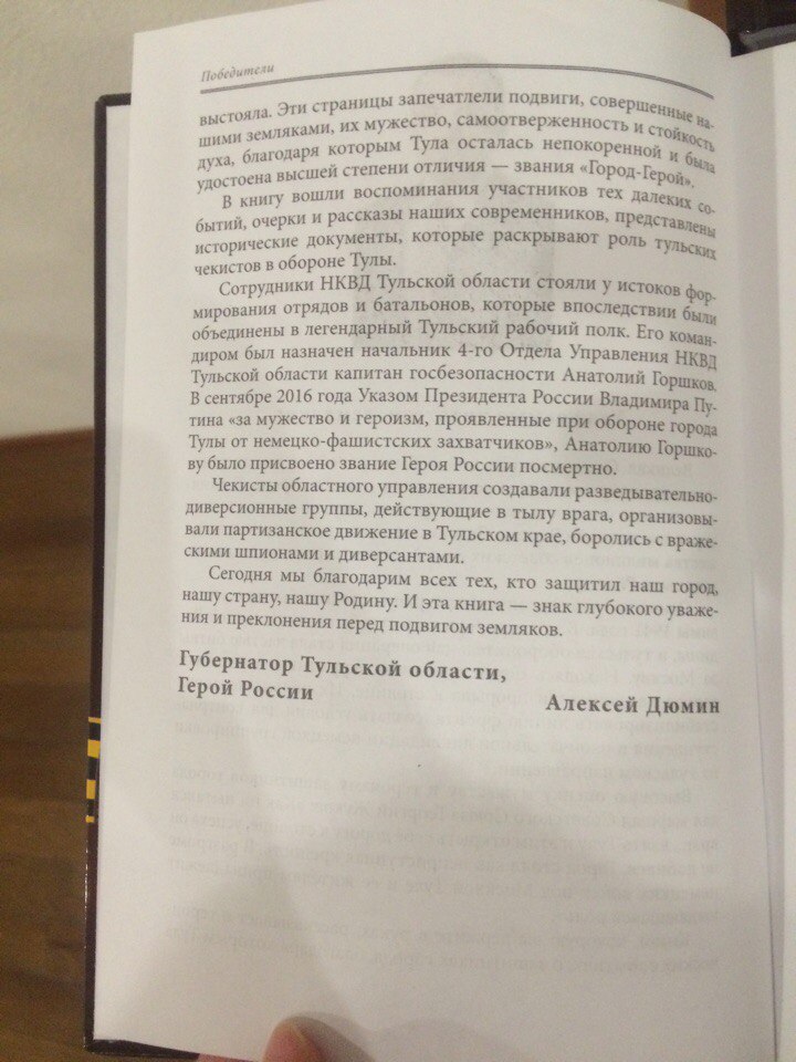 Сегодня, 13 декабря, в музее оружия состоялась презентация книги «Победители», выпущенной в честь 75-летия героической обороны Тулы. Это книга о ходе оборонительной операции города осенью - зимой 1941 года, которая стала частью одной из важнейших операций Великой Отечественной войны - защиты Москвы.