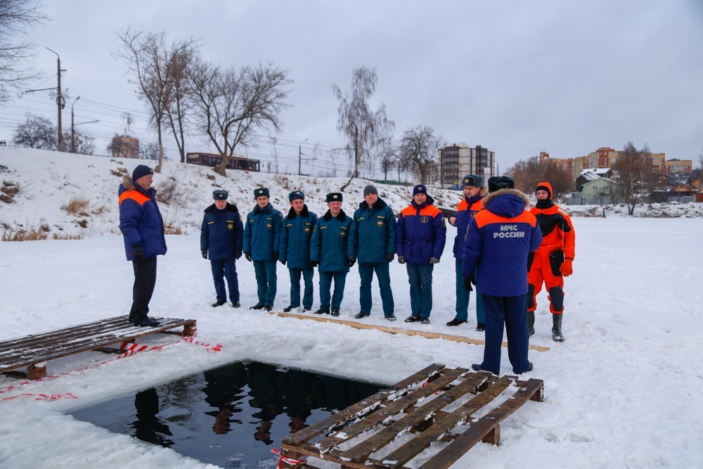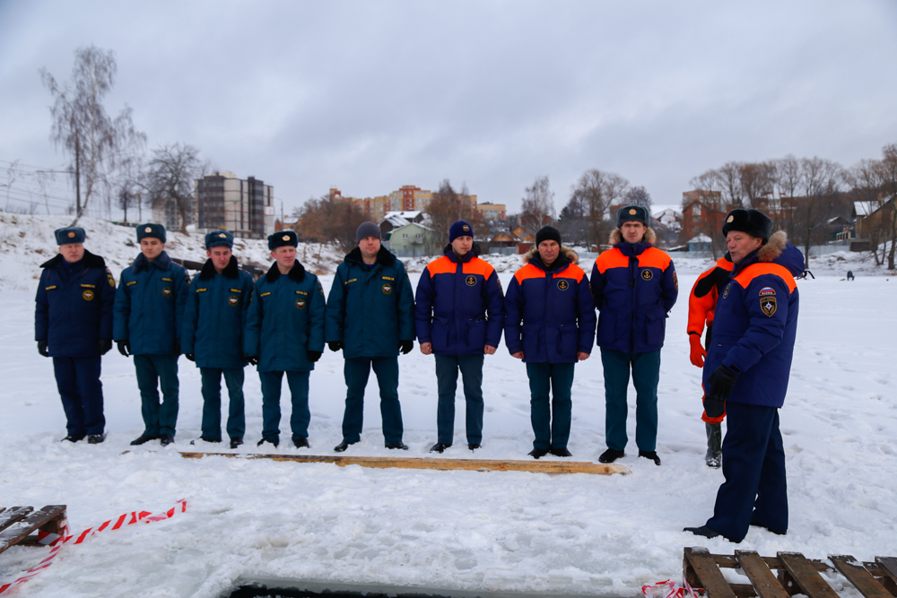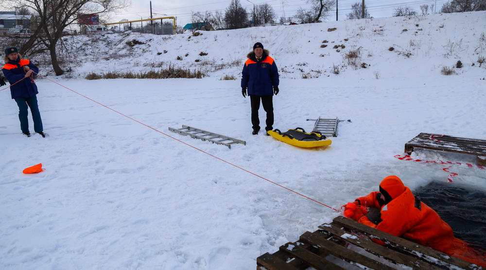 Тульские спасатели провели тренировку по спасению человека, провалившегося под лёд