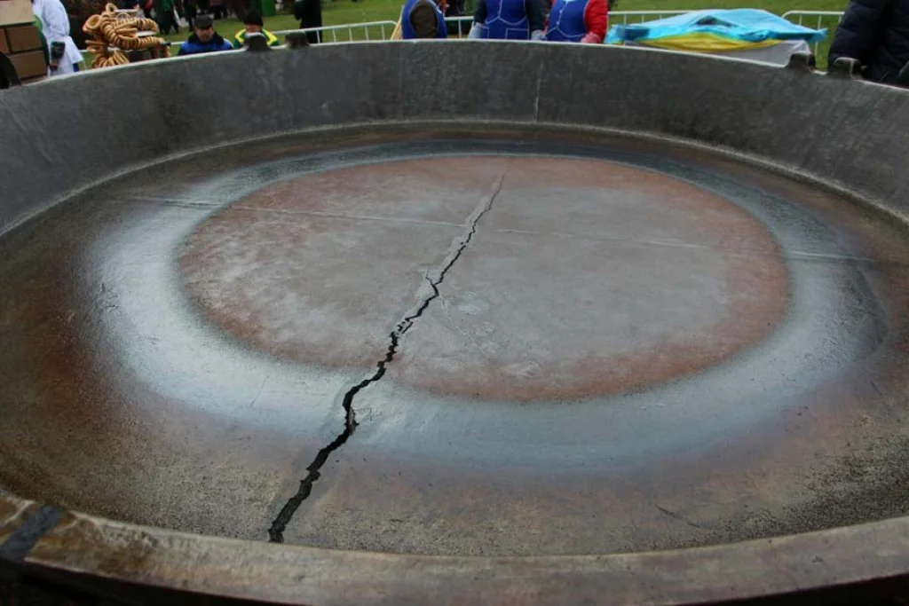 Предыдущий подарок оказался недолговечным и треснул ровно посередине. В замен туляки обещали подарить тамбовчаном новую гигантскую сковороду.