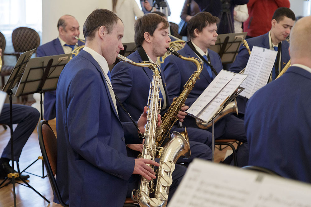 Алексей Дюмин пообщался с музыкантами и вручил им новые духовые инструменты: альт-саксофон и баритон ROY BENSON