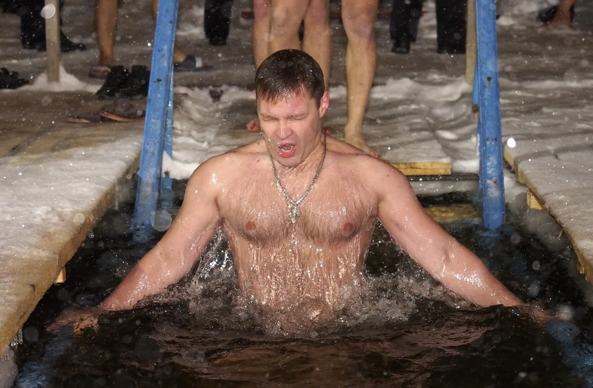 - Окунаться необходимо быстро, чтобы пробыть в воде не более одной минуты. Этого времени хватит, чтобы погрузиться три раза под воду с головой и выбраться на берег.