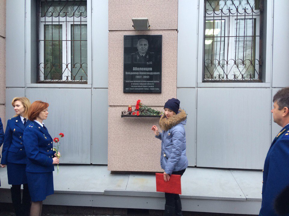 Сегодня, 24 января, у здания тульской прокуратуры состоялось возложение цветов к барельефу Аболенцева Владимира Александровича, прокурору Тульской области с 1963 по 1969 год.