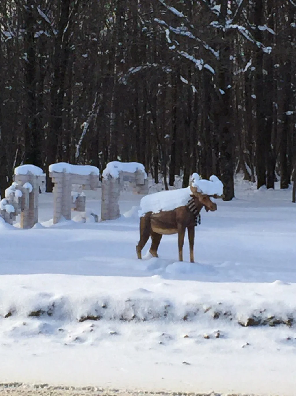 Лося на въезде в Тулу утеплили шарфиком