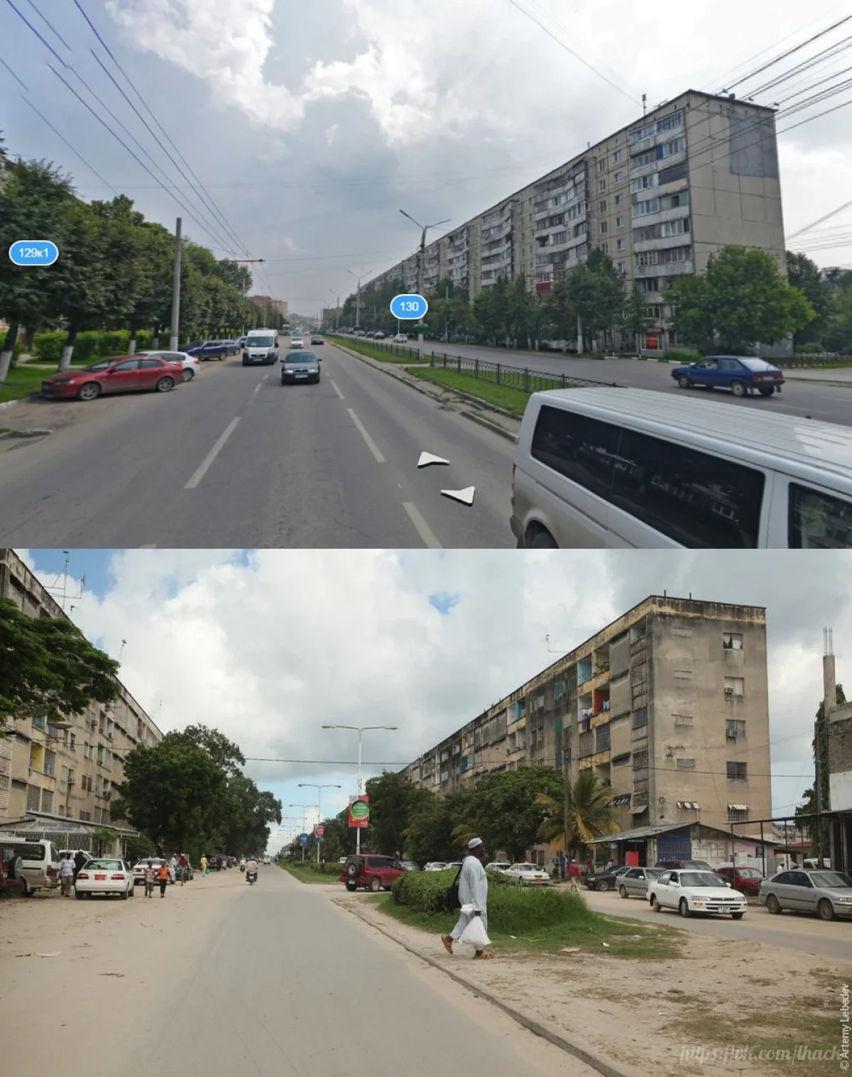 И действительно, если присмотреться, запечатлённое на фотографии место в Африканской республике очень похоже на нашу ул. Ложевую. Разве что не хватает пальм и движение правостороннее.