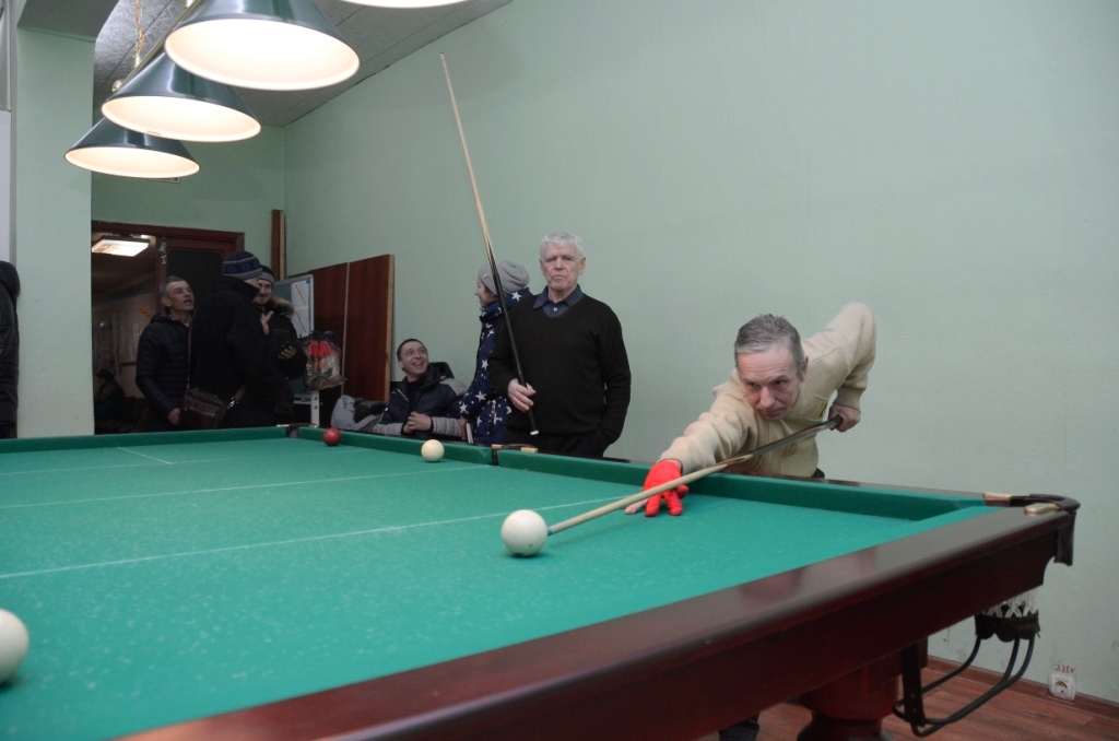 Здание «Всероссийского общества глухих» располагается прямо через дорогу от нашей редакции. Большую часть его занимают арендованные у общества помещения под такси, автомонтаж и т.д. Общество просто вынуждено идти на такой шаг, так как денег критически не хватает. Залы, где они занимаются, плохо отоплены, большая часть людей не снимает верхнюю одежду. Но в целом внутри довольно аккуратно и чисто. Поднявшись на второй этаж, я сначала обнаружила недавно отремонтированную бильярдную, дальше по коридору – выход в актовый зал.