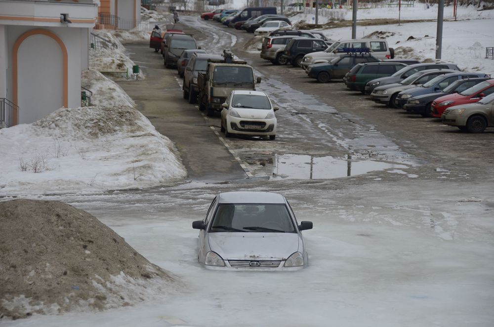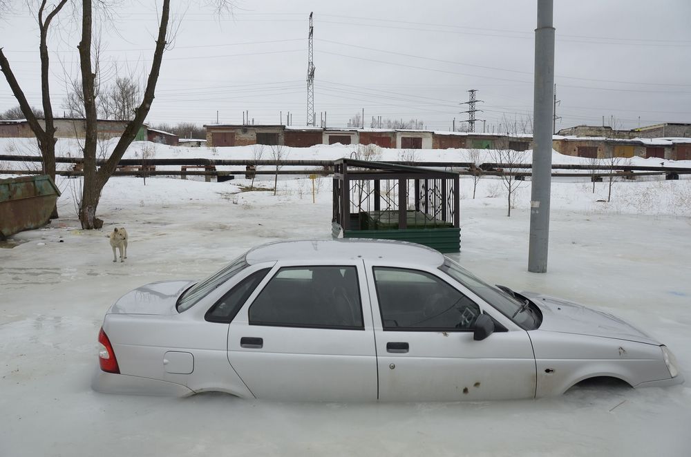 Вмёрзшая в лед «Приора» на ул. Хворостухина превратилась в достопримечательность