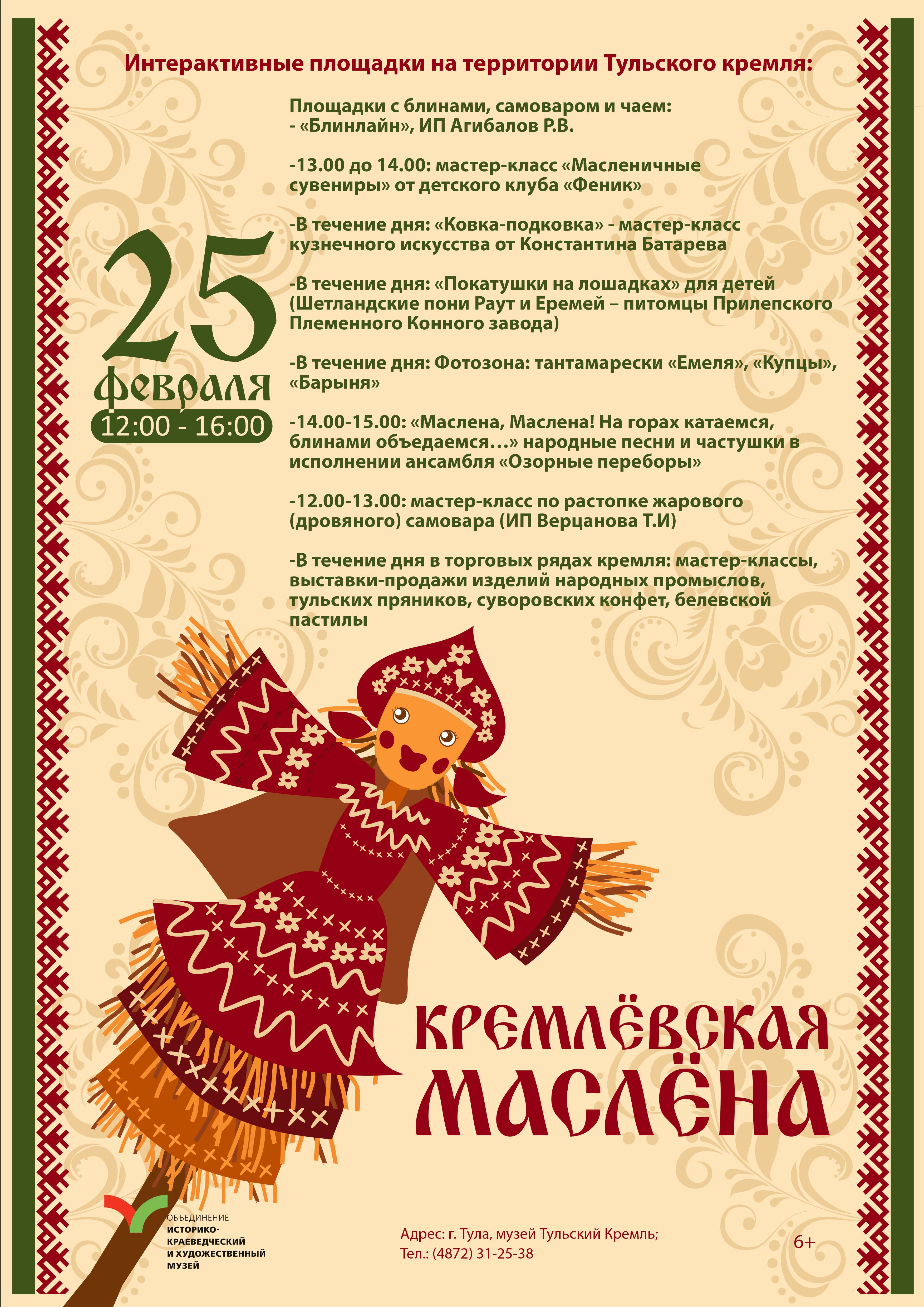 25 февраля с 12:00 до 17:00 в Тульском кремле пройдут праздничные гуляния «Кремлёвская Маслёна»!