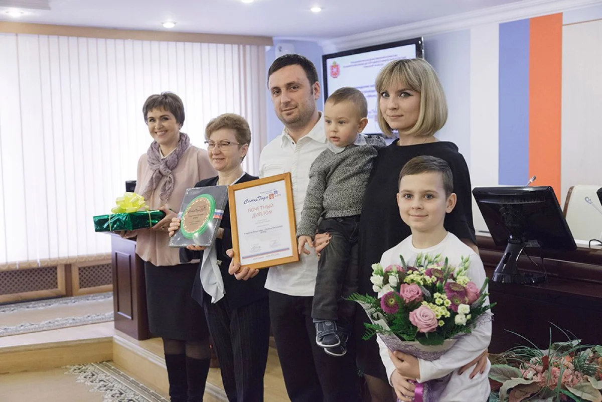 Семье вручили диплом, памятный знак, подарки и пышный букет для мамы Евгении. Вместе с мужем Владимиром они воспитали двух сыновей. Члены семьи увлекаются танцами, спортом, в том числе, футболом и подводным плаванием.