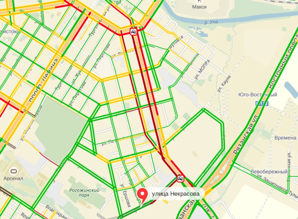 Как сообщает наш корреспондент, в центре города серьёзные пробки. Из-за аварии на ул. Некрасова парализовано движение на ул. Оборонной. Транспорт стоит в сторону Новомосковского шоссе. Еще одно ДТП — не перекрёстке ул. Советской и Староникитской.